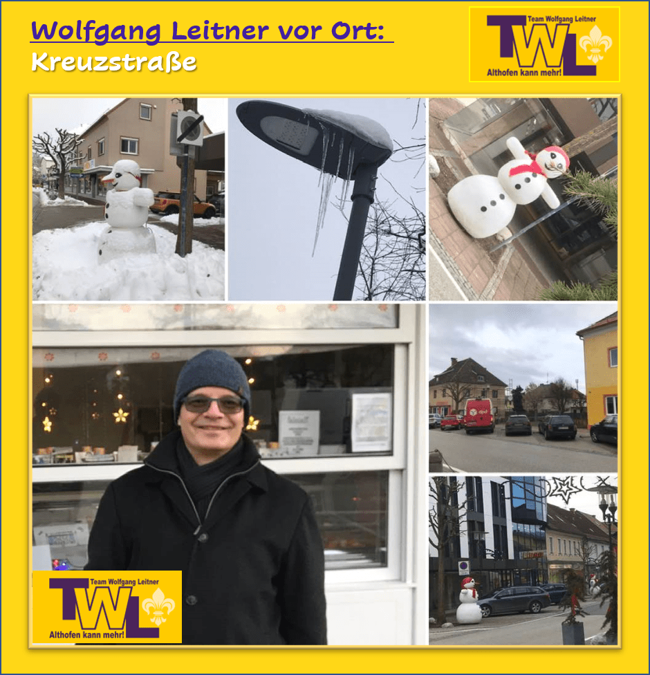 Apropos flanieren, eine Flaniermeile soll in der Kreuzstraße entstehen, mit mehr Aufenthaltsräumen für Fußgänger und Radfahrer. “Dazu möchten wir einen Fahrstreifen nützen, denn eine intelligente Einbahnregelung hätte hier wirklich Charme”, findet STR Wolfgang Leitner – BGM-Kandidat TWL.